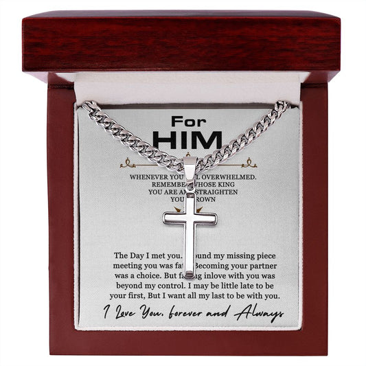 Artisan Cross Necklace For My Husband on Cuban Chain w/ MC